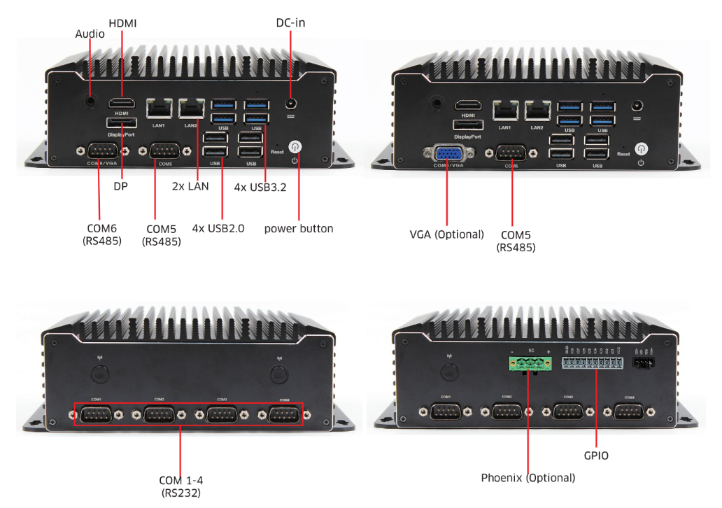 灵活供电选择:支持12V/19V DC输入,以及可选的Phoenix输入,为您提供了更多的供电选择,方便您在不同场景下使用。